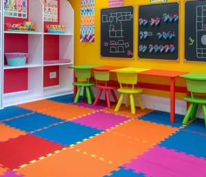 Espumas técnicas (EVA y polietileno) ligeras, resistentes y amortiguantes, ideales para pisos de áreas infantiles que brindan seguridad, comodidad y durabilidad, protegiendo a los niños en juegos y actividades recreativas.